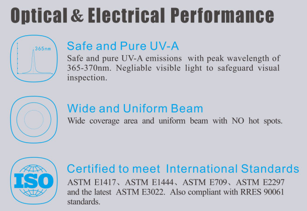 Meets ASTM UV-A intensity and wavelength specifications for FPI and MPI.